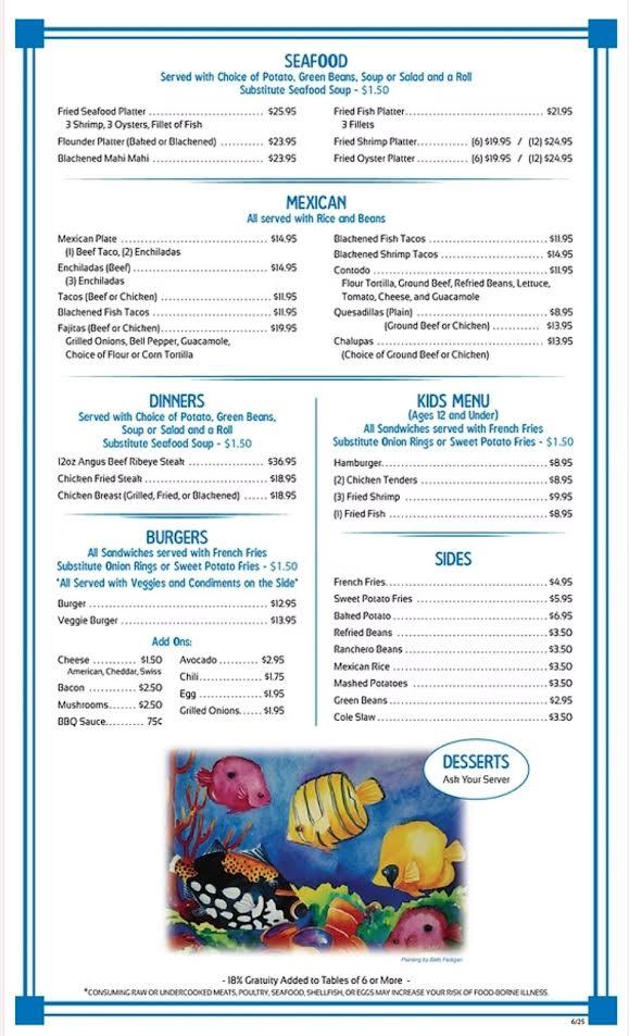 Jake's menu is a culinary delight, featuring a wide selection of dishes. For breakfast, the 'big breakfast' and huevos rancheros are popular choices. Lunch includes hearty sandwiches and fresh salads. Diners often rave about the seafood options, especially the fried shrimp and fish baskets. The Mexican plate offers a unique local twist, with tacos and enchiladas that highlight the region's culture. Overall, the diverse menu ensures that there’s something for everyone, regardless of taste preferences.